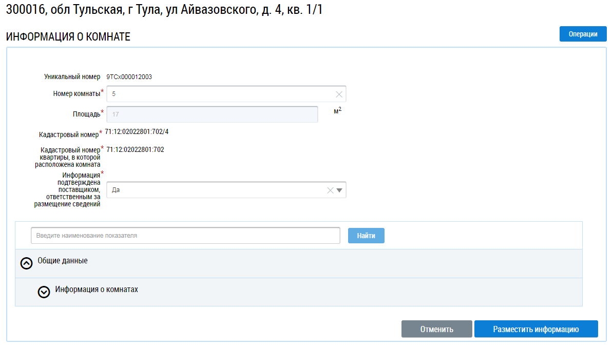 При необходимости скорректируйте информацию о помещении и нажмите на кнопку Разместить информацию. Готово.