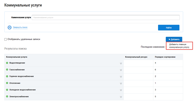 Нажмите на кнопку Добавить и выберите пункт Добавить главную коммунальную услугу.