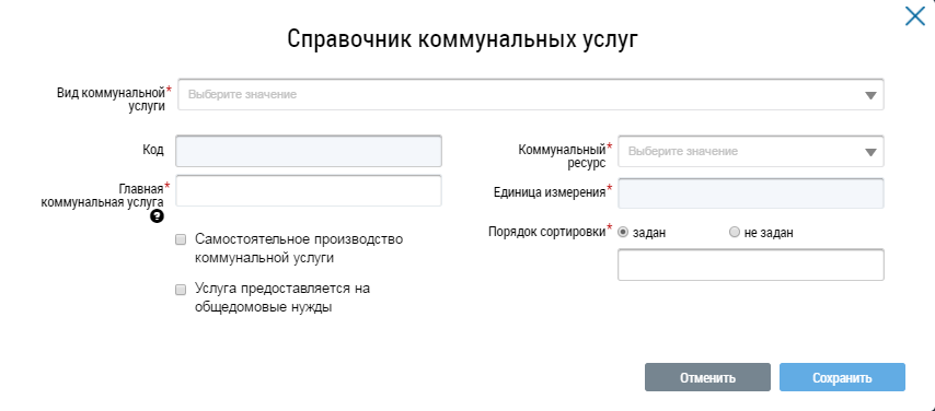 Отображается окно Справочник коммунальных услуг. Добавьте новое значение, указав в наименовании главной коммунальной услуги отметку с целью применения нового тарифа, и нажмите на кнопку Сохранить.