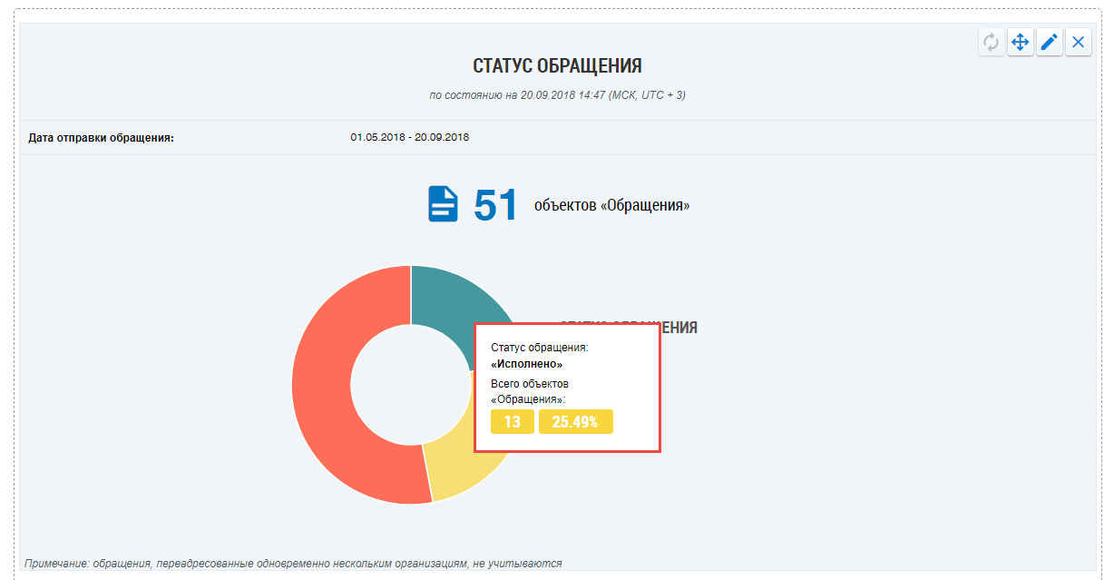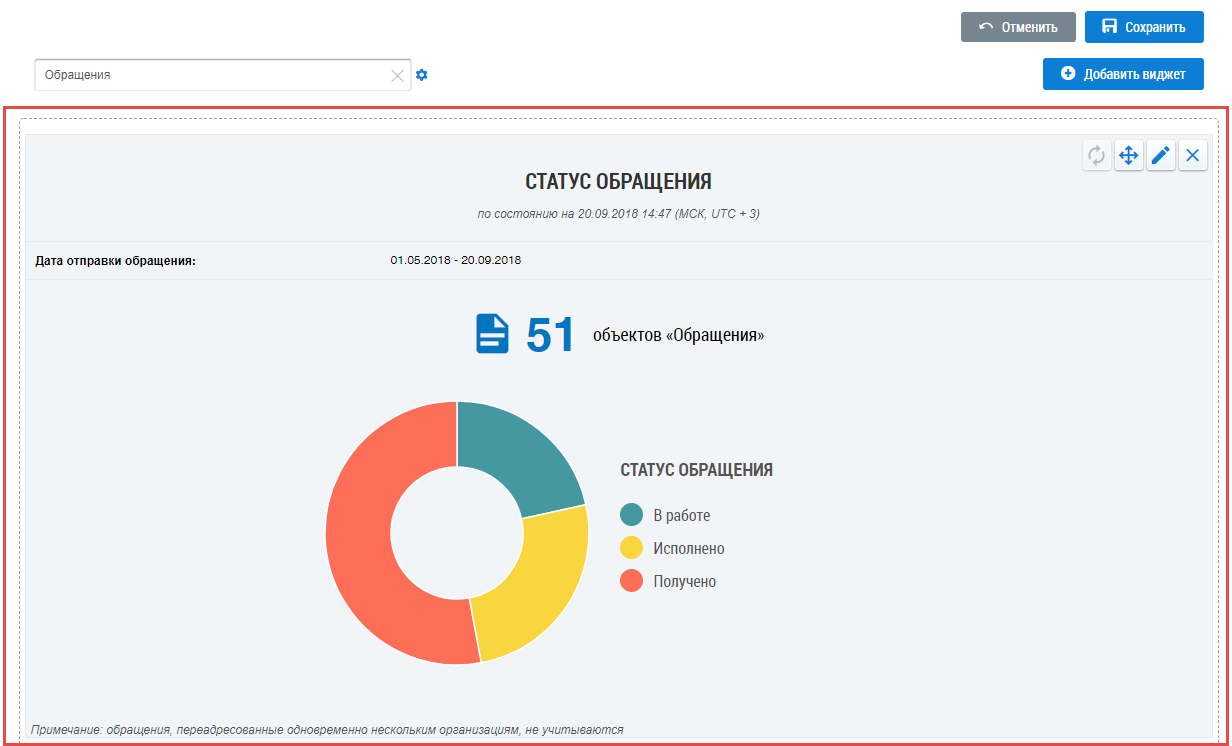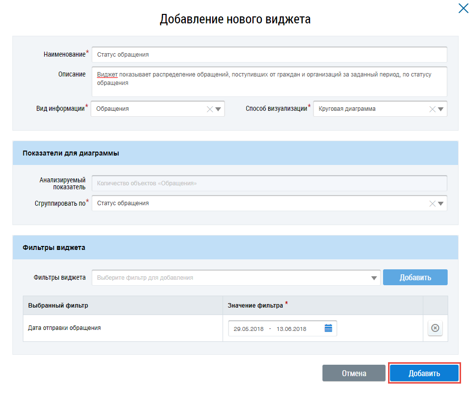 на примере виджета с выбранным видом информации «Обращения».