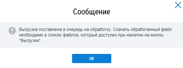 Для просмотра статуса выгружаемого файла нажмите на кнопку Выгрузки. В выпадающем окне отображается информация об отчете. Файл отчета хранится в Системе 10 дней.