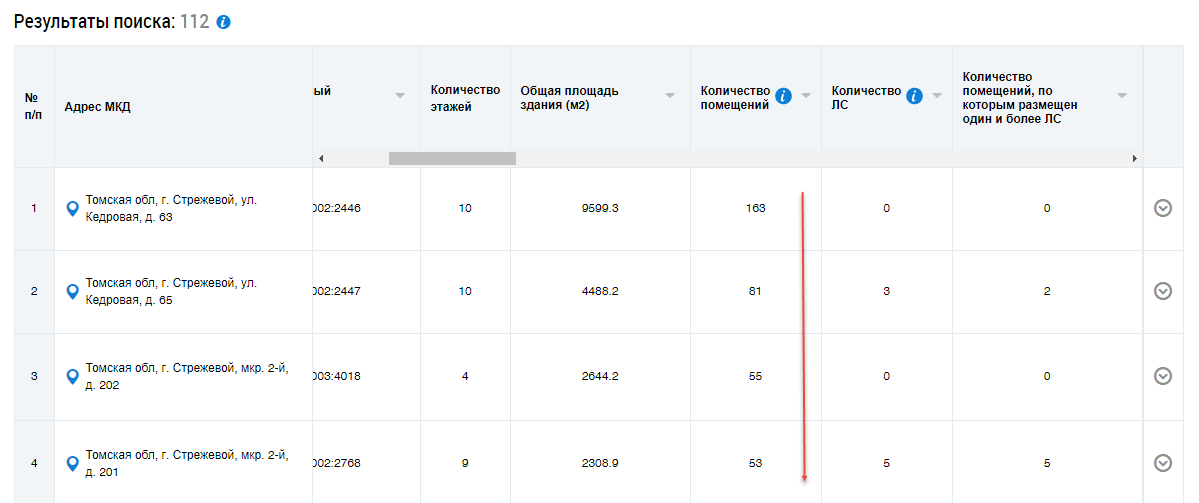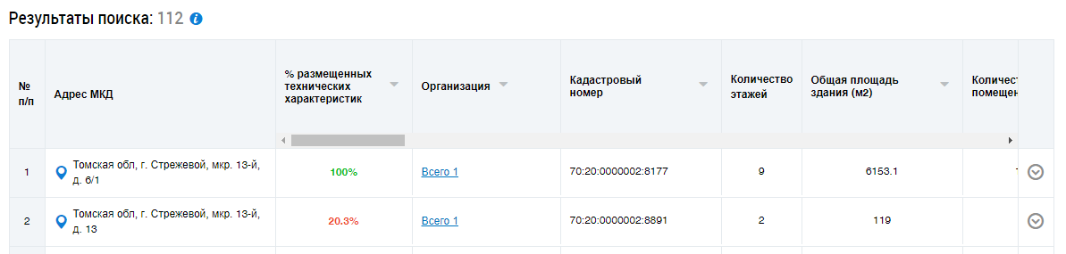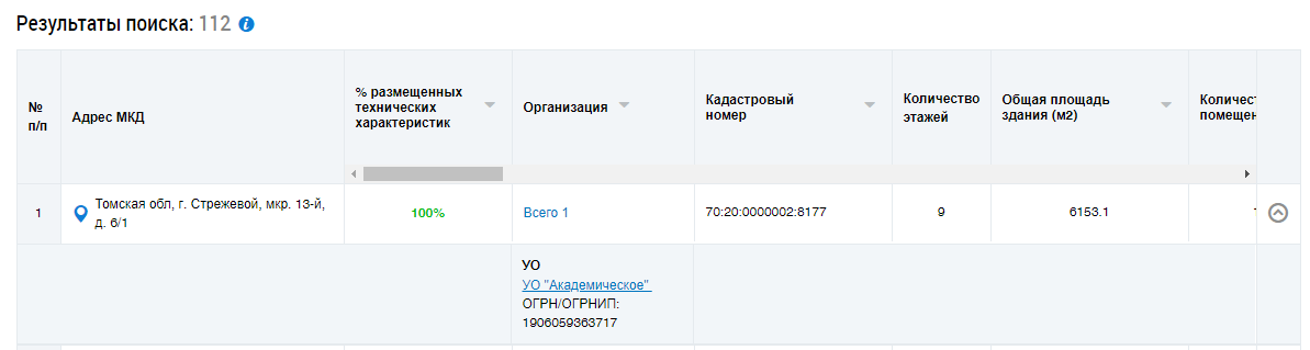 Кнопка Список МКД в столбце Просмотреть информацию о МКД отображается только если в муниципальном образовании размещена информация о домах, у которых код ОКТМО совпадает с кодом ОКТМО муниципального образования.