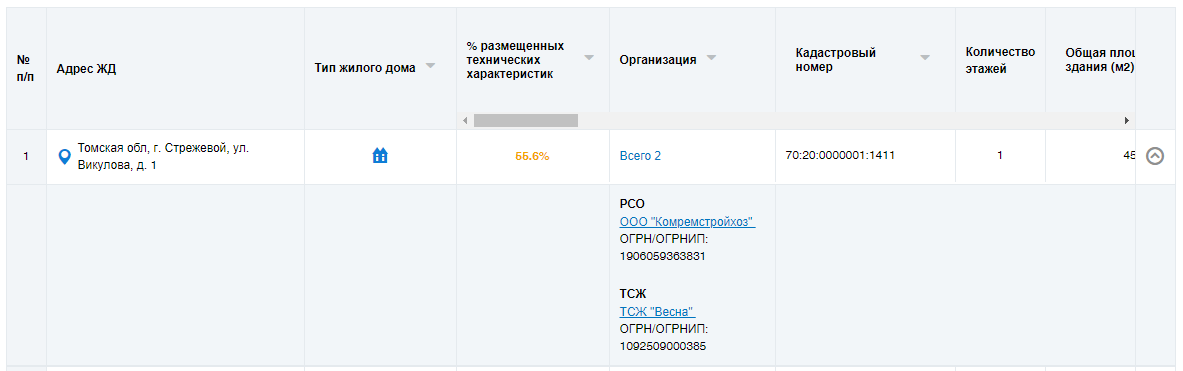 поиска.Для просмотра информации об организациях нажмите на гиперссылку общего количества организаций. Отображается информация об организациях.