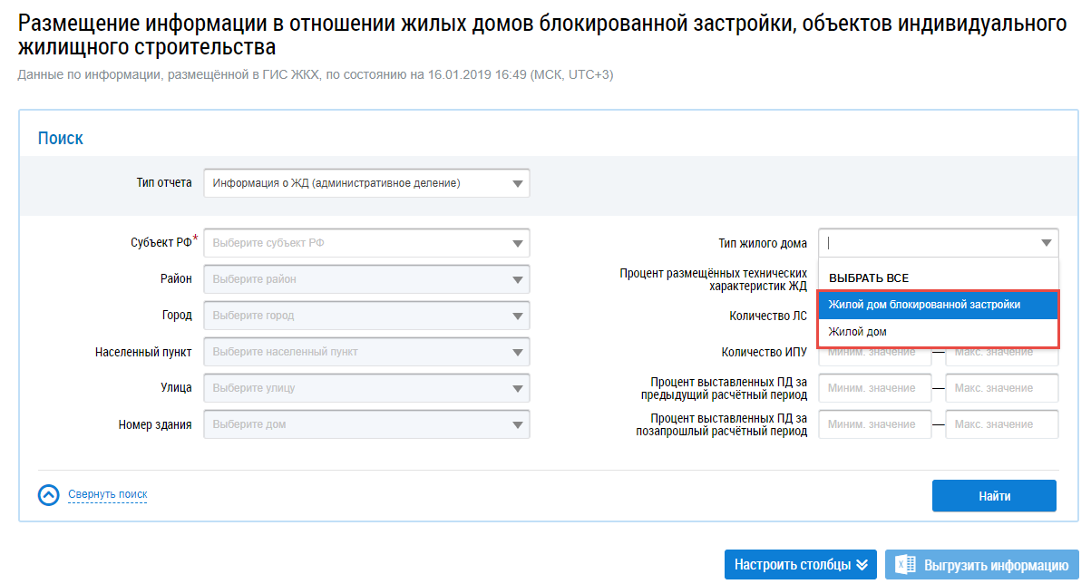 Для заполнения поля Тип жилого дома выберите значение из выпадающего списка.