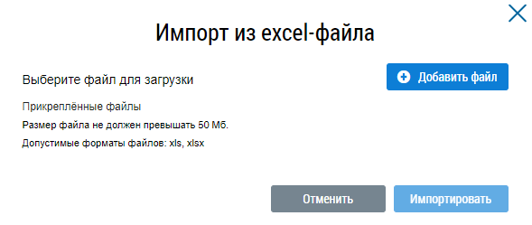 После загрузки файла нажмите на кнопку Импортировать. Отображается информационное сообщение об обработке файла.