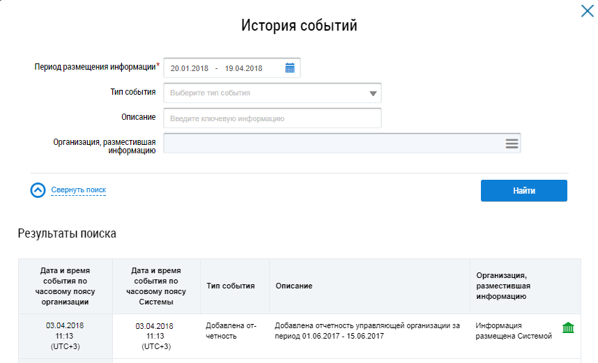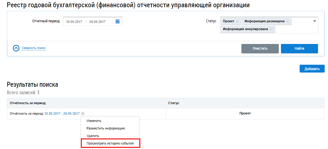 Для просмотра истории событий выберите пункт контекстного меню Просмотреть историю событий.