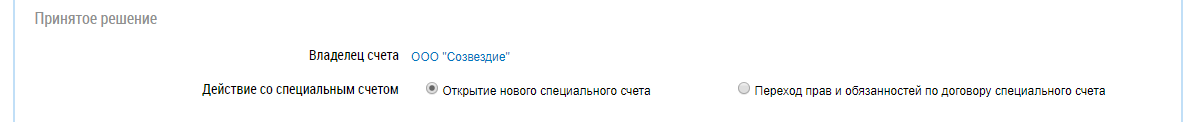 Добавление решения о замене владельца специального счета