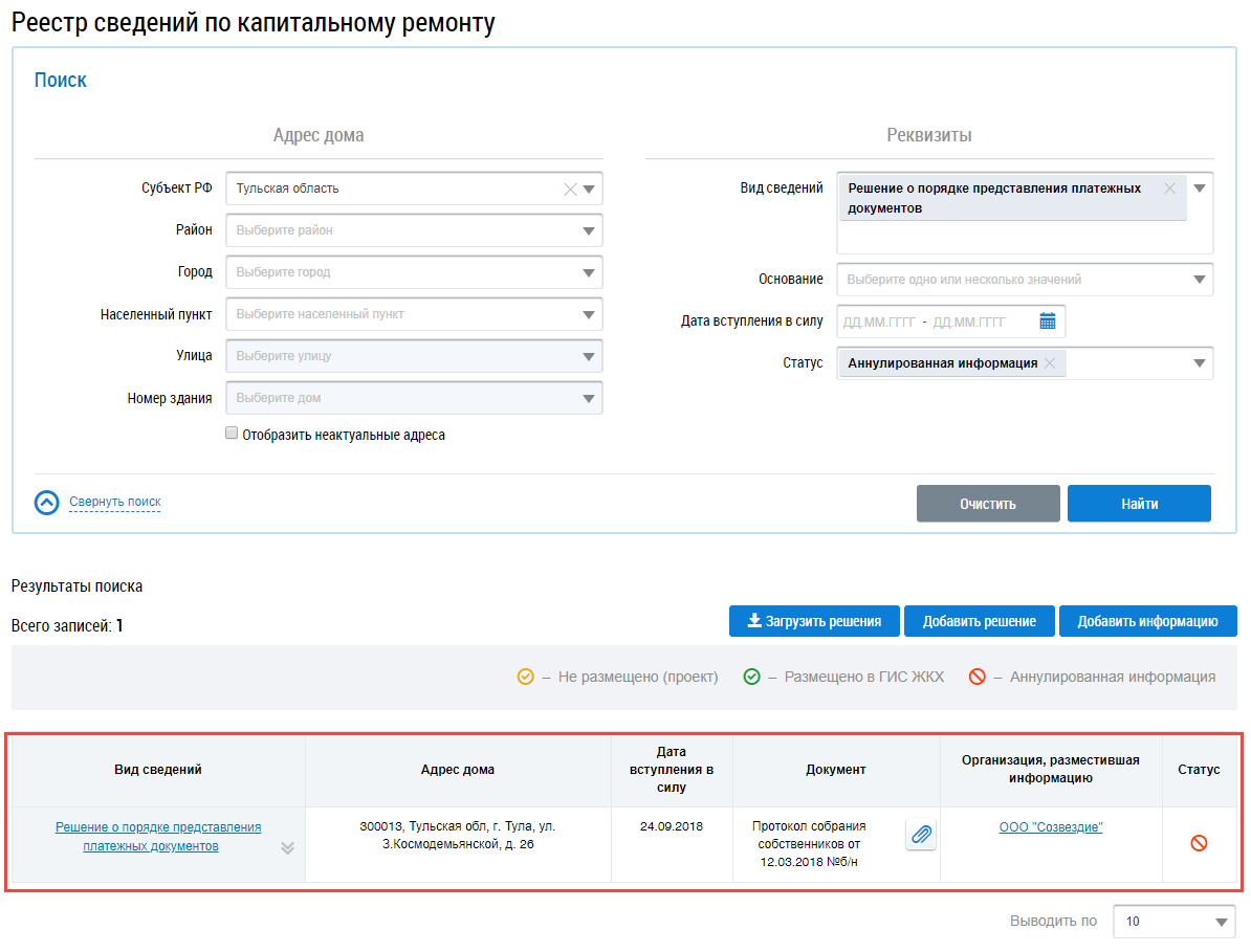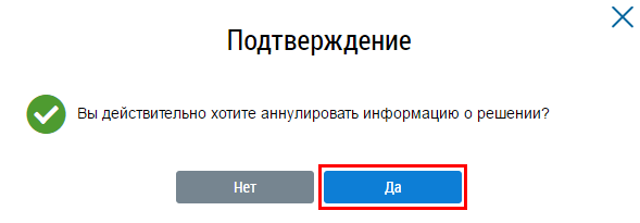 Вид решения переходит в статус Аннулированная информация.