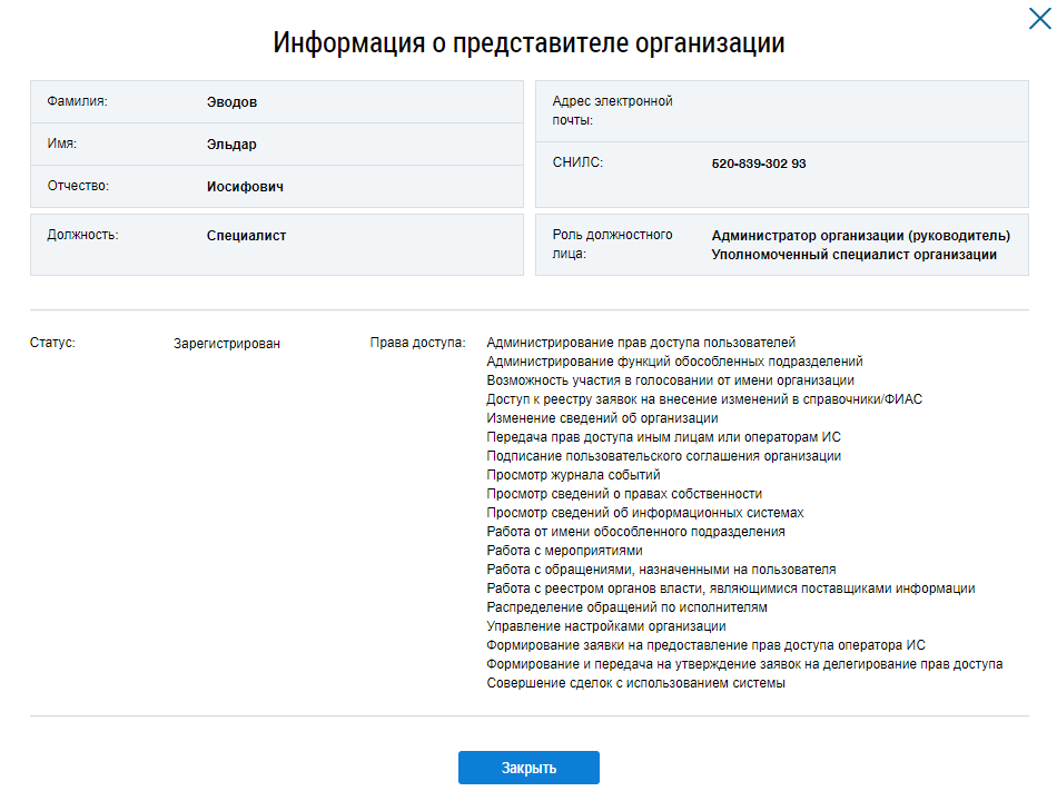 Рис. 1. Пункт «Просмотреть информацию о представителе организации»