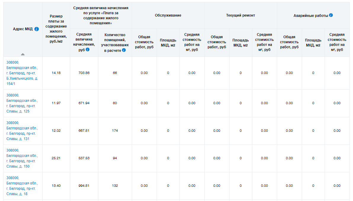 Анализ стоимости обслуживания общего имущества МКД, текущего ремонта и аварийных работ для различных территорий РФ.