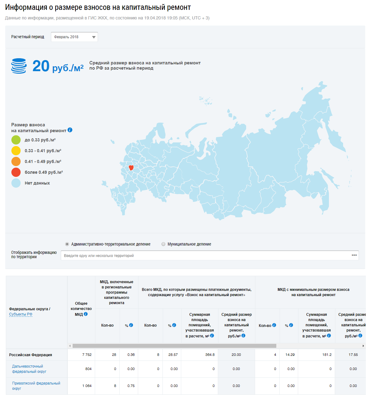 Под картой расположена таблица с подробной информацией о размере взносов на капитальный ремонт по территории.